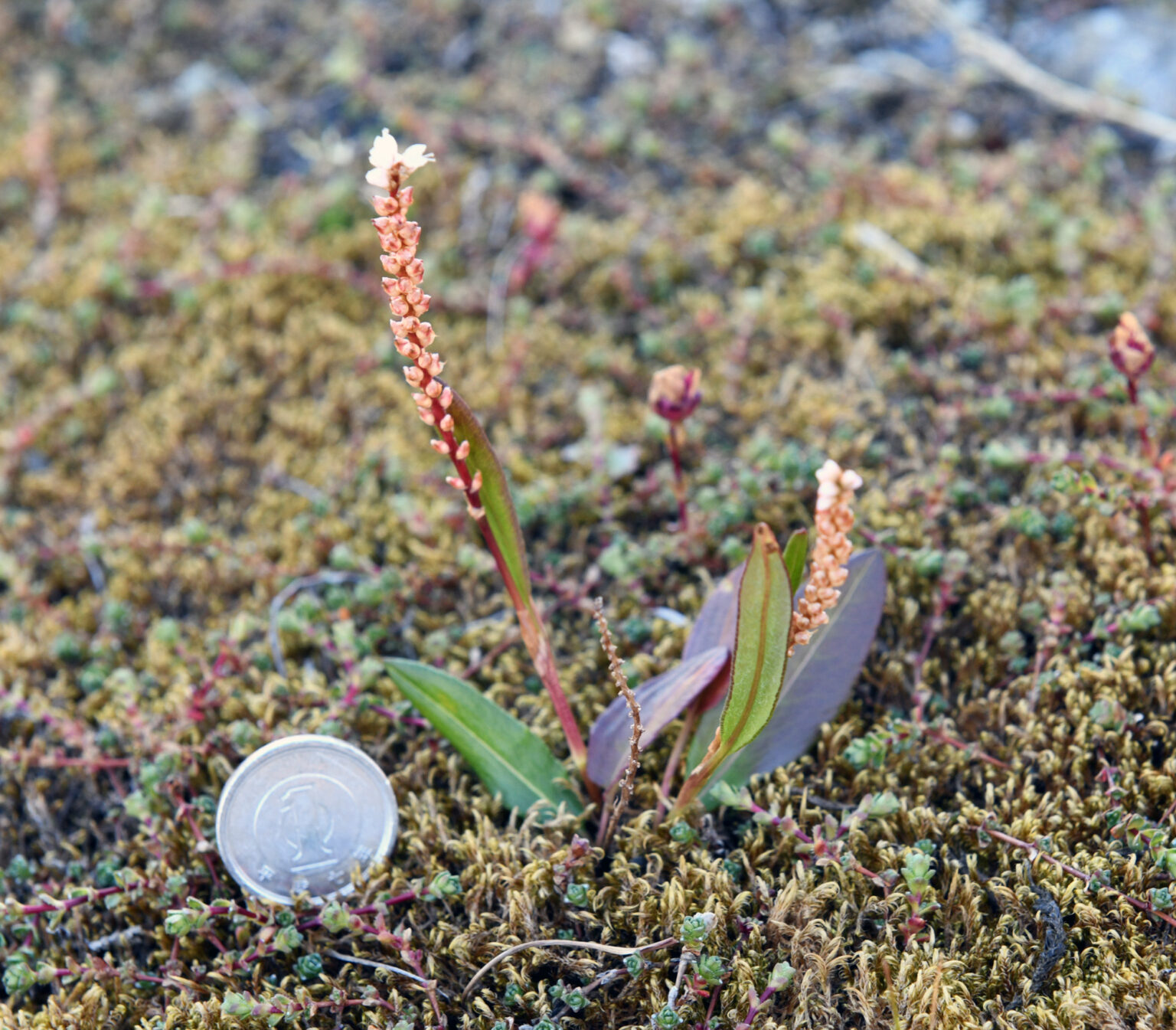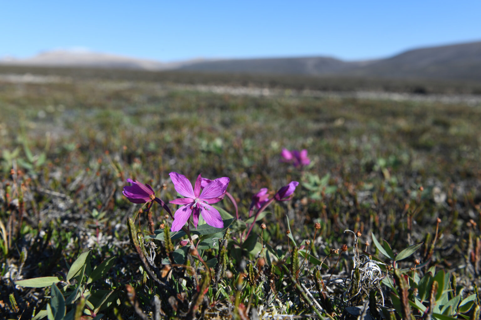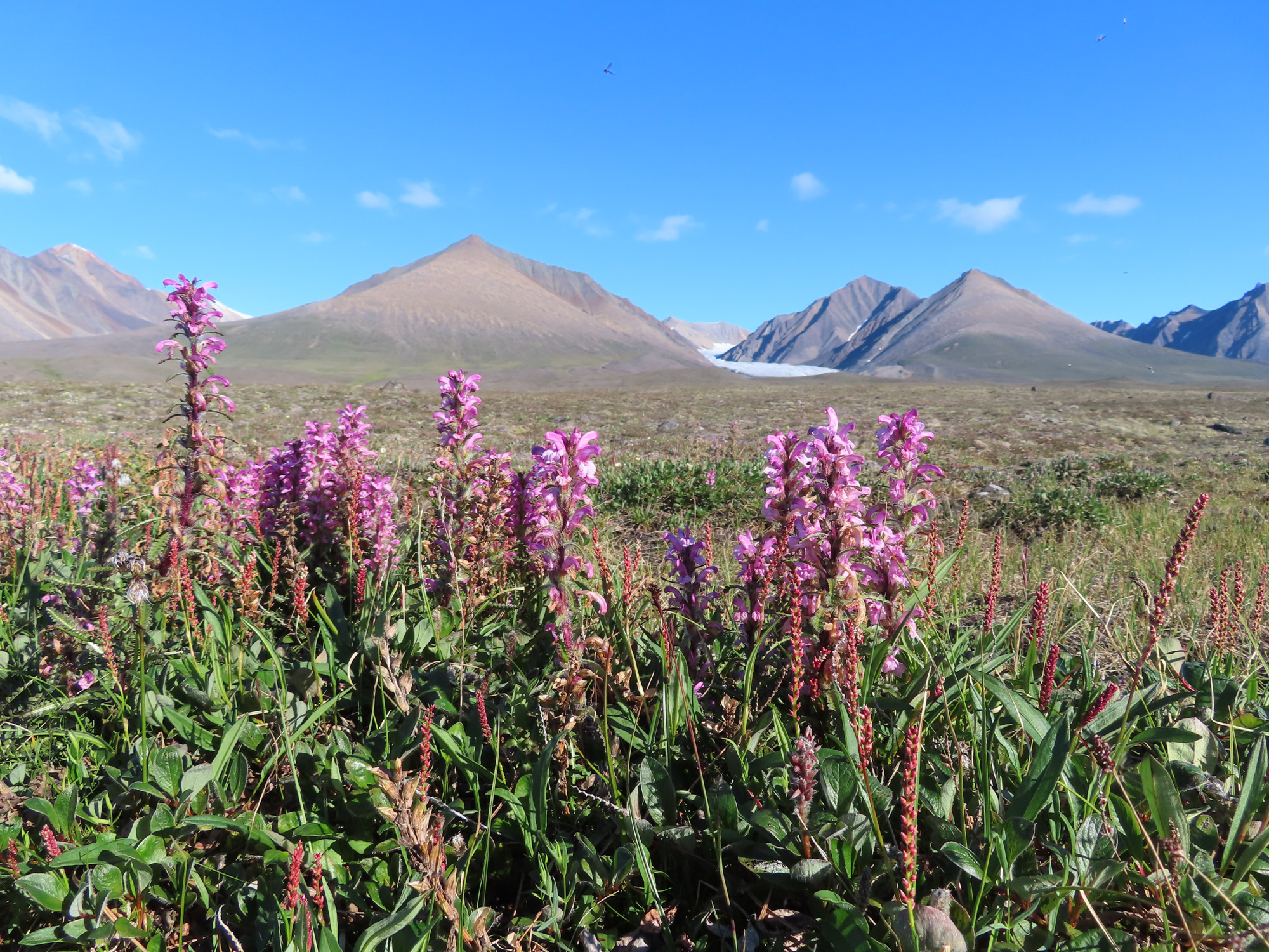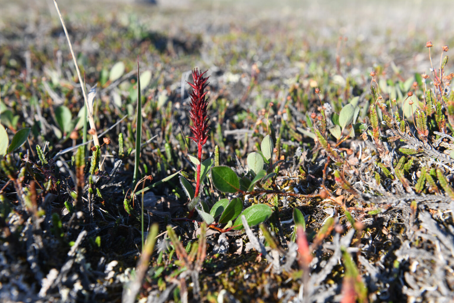 北極全体では2,200種ほどの植物が知られていますが、ニーオルスンの調査地ではおよそ20種が生息しています。植物には、一年のうちに発芽して、花をつけ、種を散布し、枯れるという生活史を送る一年生植物がいますが、北極だと寒い年が一回でもくれば種を作ることができずに死滅してしまうため、一年生植物はほとんどありません。複数年生き続けることができる多年生植物が多いです。また、夏の期間が短いため、種を作る前に寒くなってしまい、種が成熟できないことがあります。そのため、葉や茎の付け根などにムカゴと呼ばれる小さな球状のものを作ったり、脱落した個体の一部から再生したりするなど、種を作らなくても個体を増やすことのできる栄養繁殖をおこなう植物が多いです。