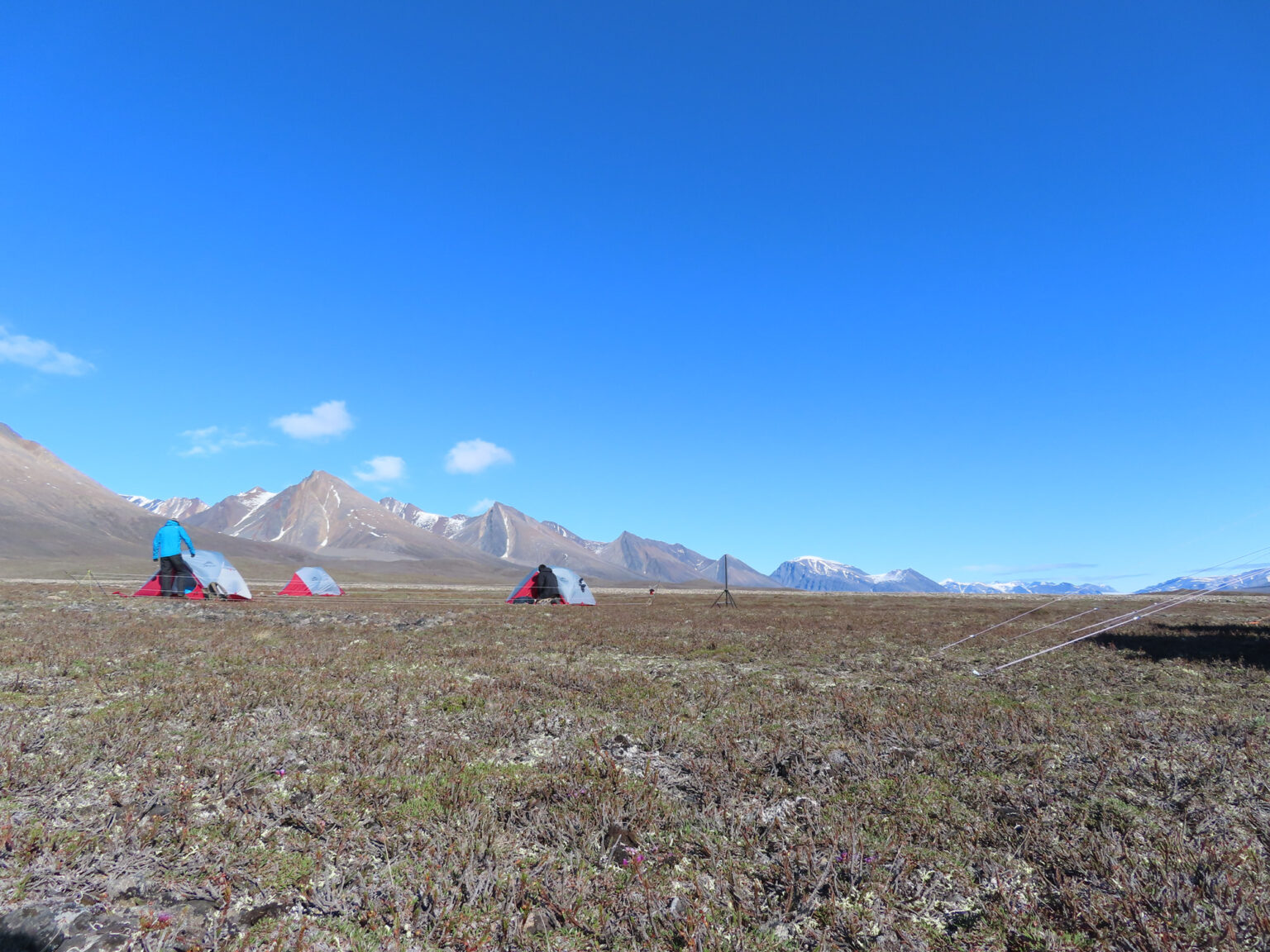 そうです。飛行機ならではの問題はあったりしますが、短時間で行けることが南極観測とは大きく異なります。ニーオルスンには観測基地があり、実験室のほか個室もあります。また、食堂もあるため、食事を作る必要がなく、研究に集中できる環境です。学生も多く滞在しています。滞在期間は短い場合で10日ほど、長い場合は数か月にわたりさまざまな調査をおこないます。一方、カナダには基地がないため毎回テントを設営し、ソーラーパネルや発電機で電気を調達しながら生活します。滞在は2週間から1か月程度が多いです。カナダで大きな問題となるのは蚊の多さで、顔や腕を出していると刺されて大変なことになるため、蚊除けのネットをかぶるか、常に虫除けスプレーを塗っています。市販の虫除けスプレーではあまり効果がないため、独自にブレンドしたスプレーを使います。さらに、ニーオルスンでもカナダでもホッキョクグマに遭遇する可能性があるため、ライフルを持って行動しています。